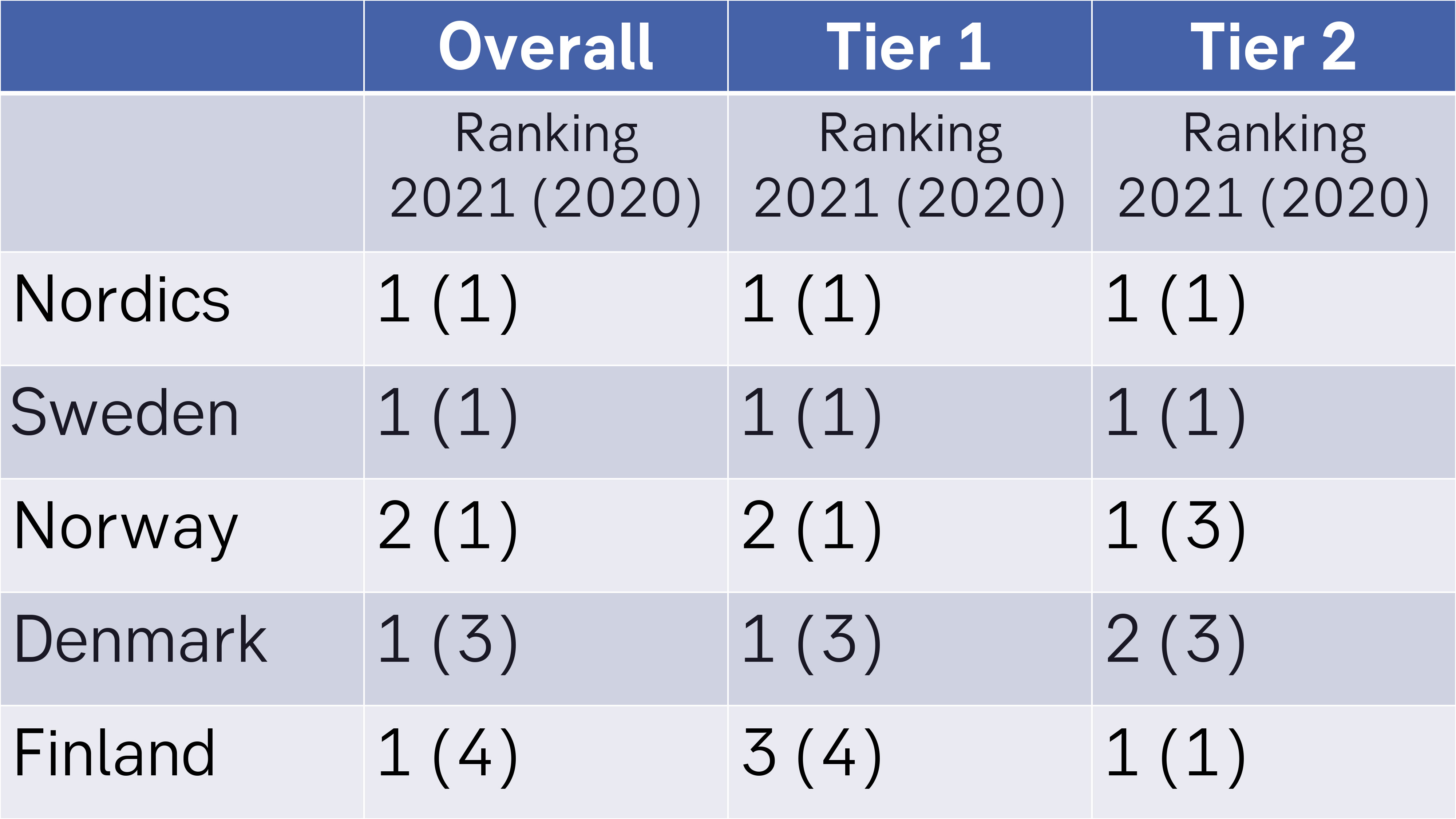 For the second year in a row SEB was ranked at the top and widened its lead both overall and in both segments. Its total score rose from 4.20 and 4.29.